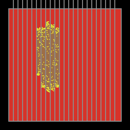 and and or primitives.not primitive to make true statements false, and vice-versa.ifelse primitive. In the model example below, we have some patches that represent mousetraps and a few mice moving around randomly. If a mouse steps on a mousetrap, it sets its trapped? variable to true. The mice who are not trapped? continue moving around, while the ones who are trapped remain stationary.